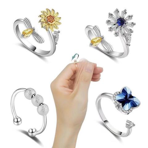AA00179回転可能な調整可能なフィジェット抗不安リングジュエリー女の子女性クリエイティブヒマワリスピニングスピナーリングクリスタル